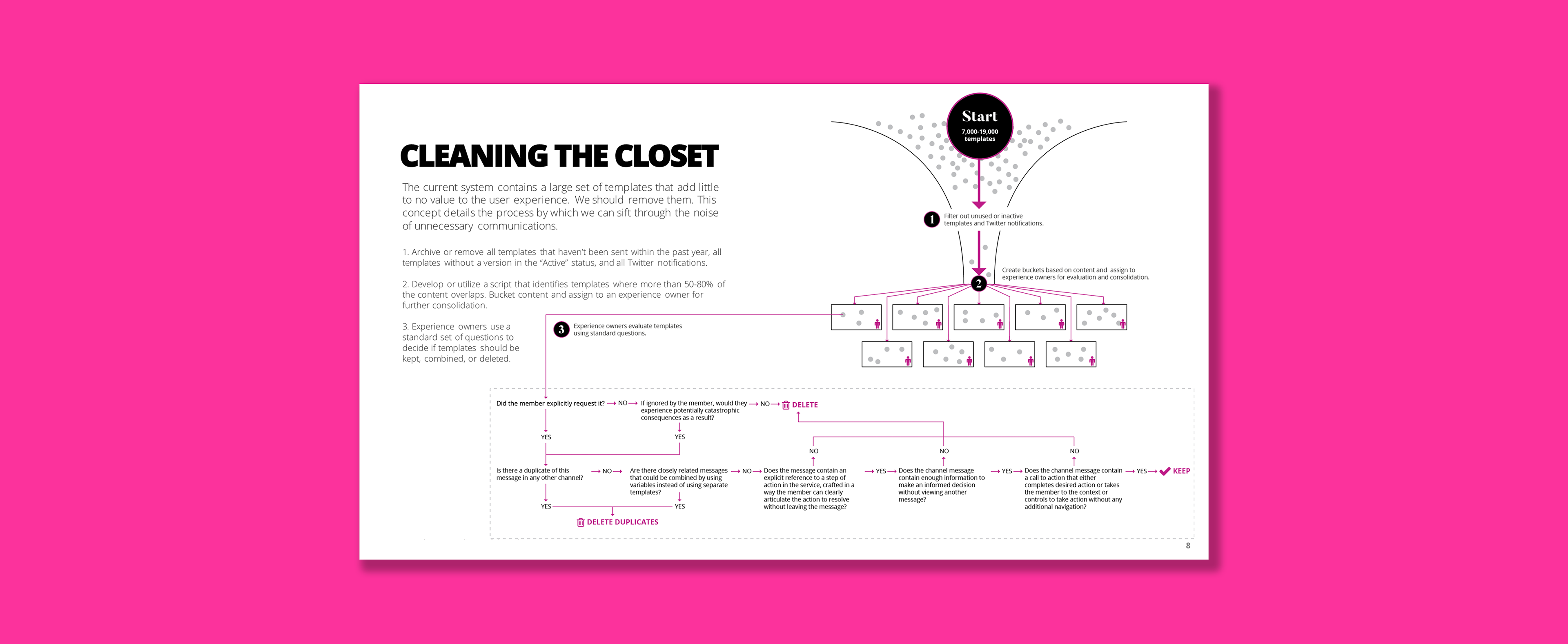I worked as a service designer with a member of an external design agency to identify process improvements. I reviewed tools and messaging templates used throughout the process and dug into available messaging data and metrics. I also went through months of member survey responses and complaints.